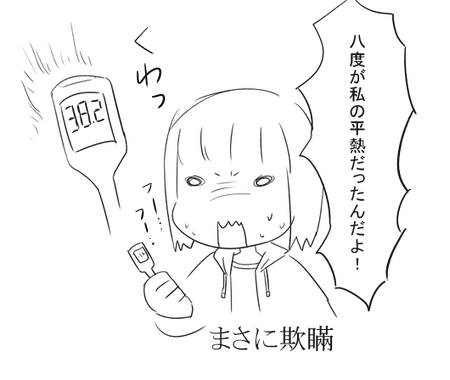 あふぇー… そろそろテルモのサイトとかで検温結果を記入できる検温表とかDLしそうになってきた。今さらもう遅い気がするし、治ったら治ったでそんな表の存在自体忘れそうなんだけど…