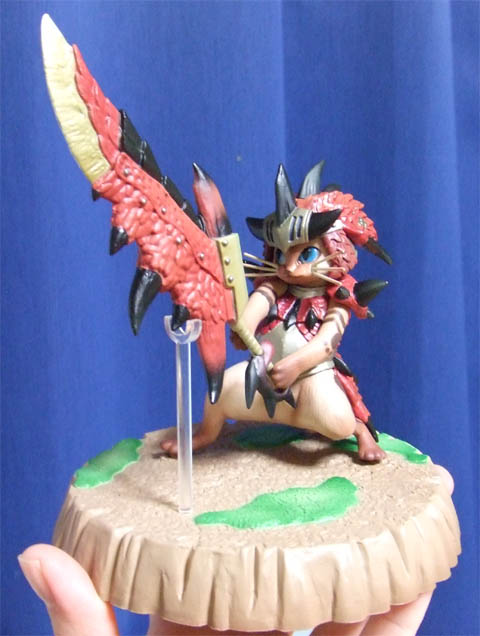 「猫のフィギュアが欲しいんですよぉー(笑)」などと言ってレジのお姉さんと笑いあいながらアイルーたんを出すまで12回もかかってしまいました…ううう久し振りの散財ェ…すごい金額だよ小市民には… 棚を作っていたもう一人のお姉さんが「エッ!!A賞出たんですか!おめでとうございます!!」って言ってくれて、でもわたしが欲しかったのはD賞なのでとっさに「はいぃ!!嬉しいですぅう!」的なイイ笑顔による返答をすることができず、「あはは…フフッ、ありがとうございます」なんて微妙なテンションの返事をしてしまいました。ごめんねお姉さん。嬉しくなかったわけじゃないんだ…。